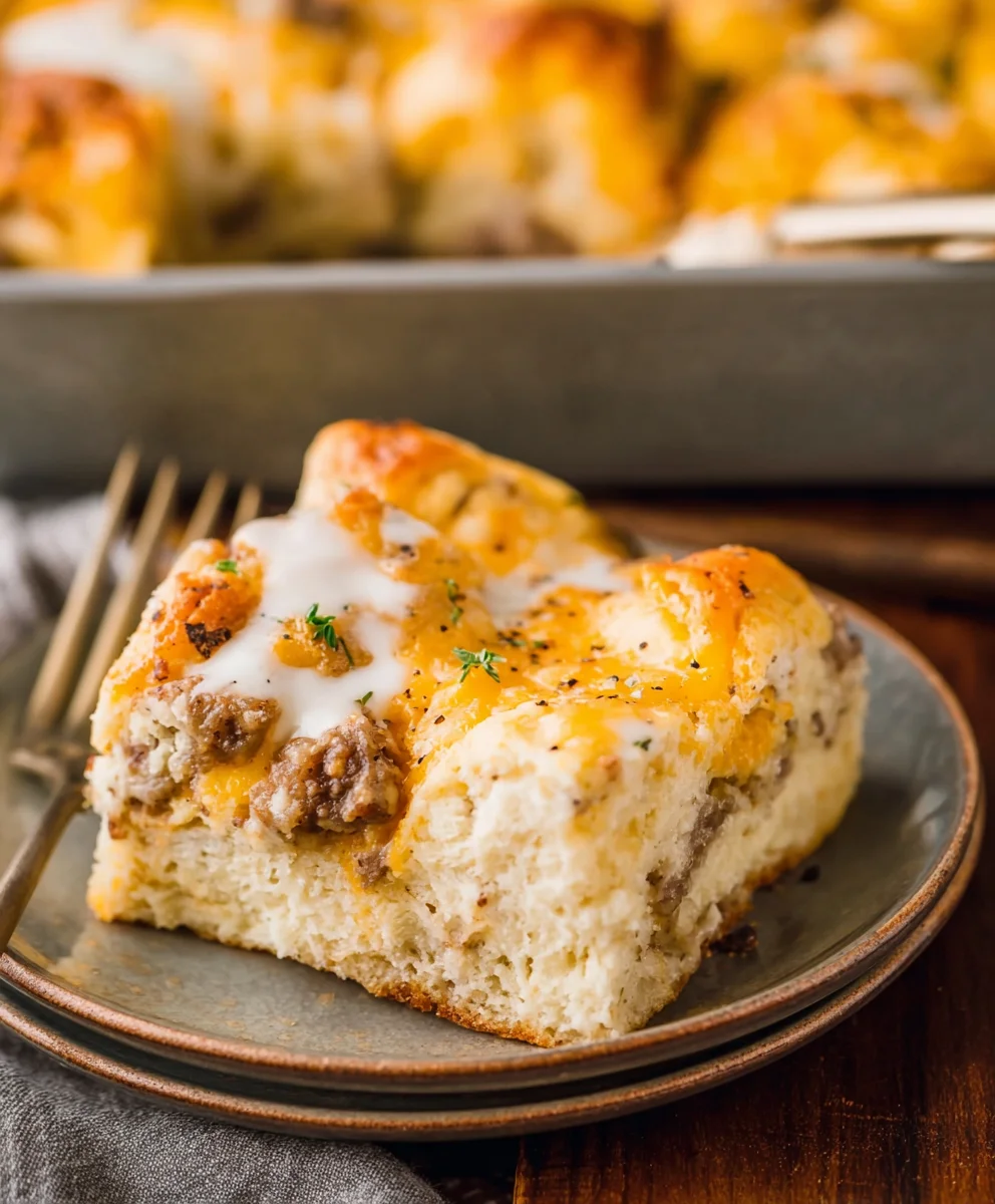 Beef Biscuits and Gravy Breakfast Casserole