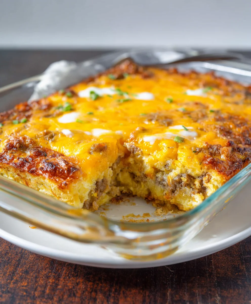 Cheesy Beef Sausage Hashbrown Breakfast Casserole Recipe
